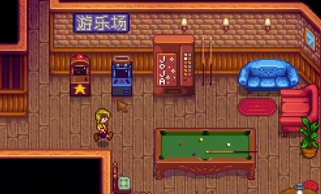 餐吧的另一个功能是作为村民社交场所。格斯会在特定节日或事件中调整商品,例如威利的6心事件后,餐吧会临时无限量供应蟹黄糕。店内设有一台Joja自动售货机,玩家可花费75金币购买Joja可乐。需部分随机商品的价格会波动,建议玩家根据需求选择性购买。
