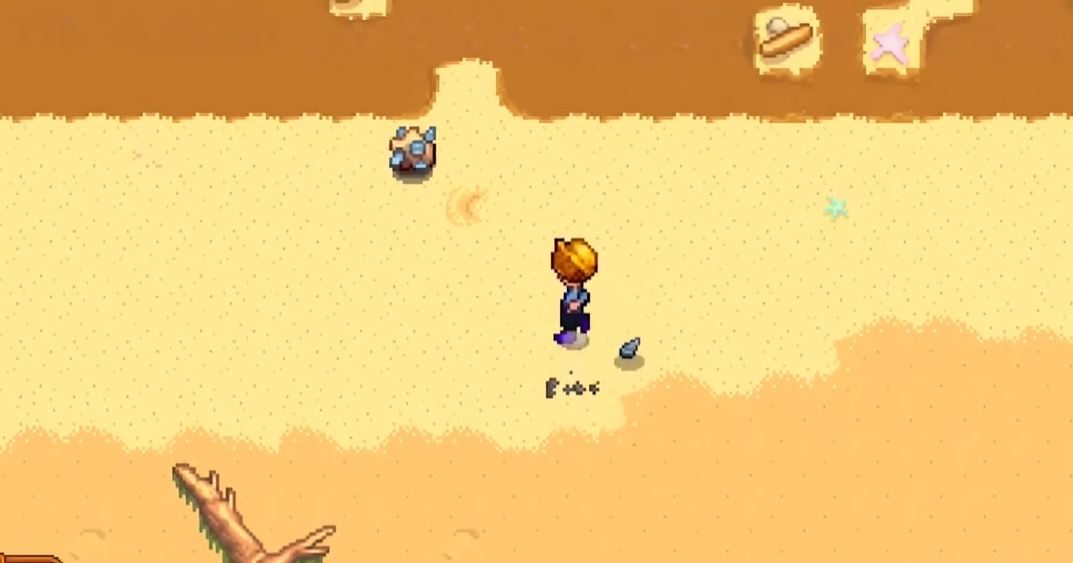 姜岛东部区域的金核桃主要通过环境互动获取。雷欧家中的树用斧头砍伐可获得1个,祭坛放置香蕉会触发大猩猩事件奖励3个。丛林中的石头小径右侧隐藏着宝石鸟神龛,南侧有一棵核桃树。岛屿南部需花费20个金核桃修复度假村后,才能进入东南海湾探索。沙滩上的特定图案如X形标记或海星围成的区域,用锄头挖掘可能发现金核桃。钓鱼也有概率直接获得,尤其在姜岛周边海域。