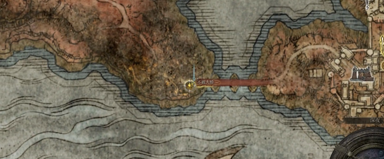 不破大桥区域存在士兵与野狗互斗的机制,玩家可隐蔽观察并拾取双方战斗后掉落的卢恩。该地点位于大地图右上角矿坑出口南侧,需沿大路折返下坡抵达。每次战斗约产出2500-3000卢恩,通过反复传送赐福点重置敌人实现循环刷取。该方法的优势在于风险较低,但需注意躲避红眼野狗的仇恨范围。