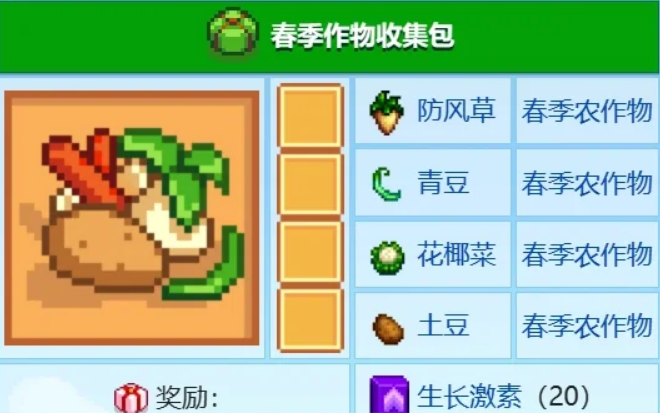 黄水仙的核心用途之一是完成社区中心工艺室的春季觅食收集包,需提交1个黄水仙与其他春季觅食物品(野山葵、蒲公英、韭葱)。若选择Joja超市路线则无此需求,但仍建议保留用于送礼或合成春季种子。春季种子配方需1个黄水仙、1个野山葵、1个蒲公英和1个韭葱,制成后可种植出随机春季觅食作物,形成资源循环。需注意任务或收集包要求的黄水仙必须为任务期间采集,提前储备的无效。