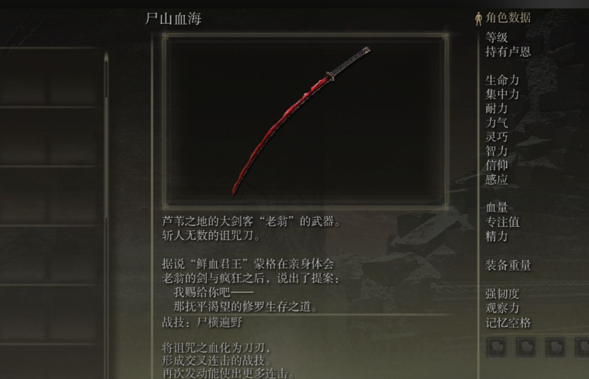 装备选择上,打刀或长牙是不错的基础武器,后期可以换成名刀月隐或尸山血海。战技建议用居合或猎犬步法,居合能打出高额单体伤害,猎犬步法则能提高生存能力。如果喜欢更暴力的玩法,可以试试切腹战技,配合出血效果能大幅提升输出。防具不用追求太重,中等负重即可,确保翻滚灵活。头盔可以选择增加灵巧的白面具,进一步提升伤害。