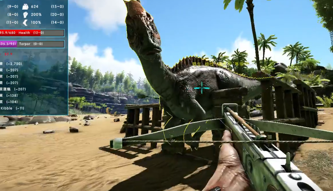 驯服启动时,骑乘似鸡龙、迅猛龙等移速较快的坐骑,将镰刀龙逐步引诱至提前搭建的陷阱中,待其完全进入后迅速从出口脱身并封闭入口,让镰刀龙被困于陷阱内部。随后占据陷阱外的安全位置,使用麻醉武器瞄准镰刀龙头部射击,头部命中可带来1.5倍眩晕效果,能有效减少麻醉箭消耗,每射击4至5次暂停观察眩晕值,避免过量射击导致其死亡。成功击晕后,第一时间打开镰刀龙物品栏,放入斑龙蛋饲料,没有饲料则依次放入蔬菜或紫色浆果,同时在其周围放置木制拒马,防止其他掠食者攻击昏迷的镰刀龙,确保驯服环境安全。