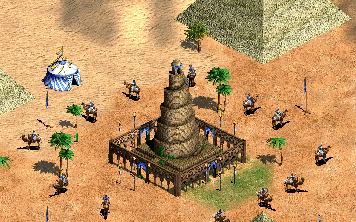 进入城堡时代后,核心战力围绕马穆鲁克展开,这一兵种对敌方骑兵有高额克制伤害,能有效应对十字军的骑士部队,搭配适量骑射手与骆驼兵组成混合部队,兼顾近战与远程输出。防御上要重点把控关键隘口,在底比利亚斯等敌方据点附近的要道建造城堡,配合城墙形成封锁线,既阻挡敌军进攻,也限制敌方资源采集范围。海上方向需同步发展,建造码头生产箭船,初期以防守海岸线为主,用箭船配合岸边防御塔抵御泰尔的海军突袭,不急于远洋出击,避免舰队损失过大。此阶段要持续生产马穆鲁克,同时升级相关攻防科技,积累至少20名马穆鲁克与3台投石机,投石机用于摧毁敌方城堡、箭塔等防御建筑,为后续反攻扫清障碍,僧侣单位也要适量训练,跟随部队提供治疗,延长前线部队续航能力。